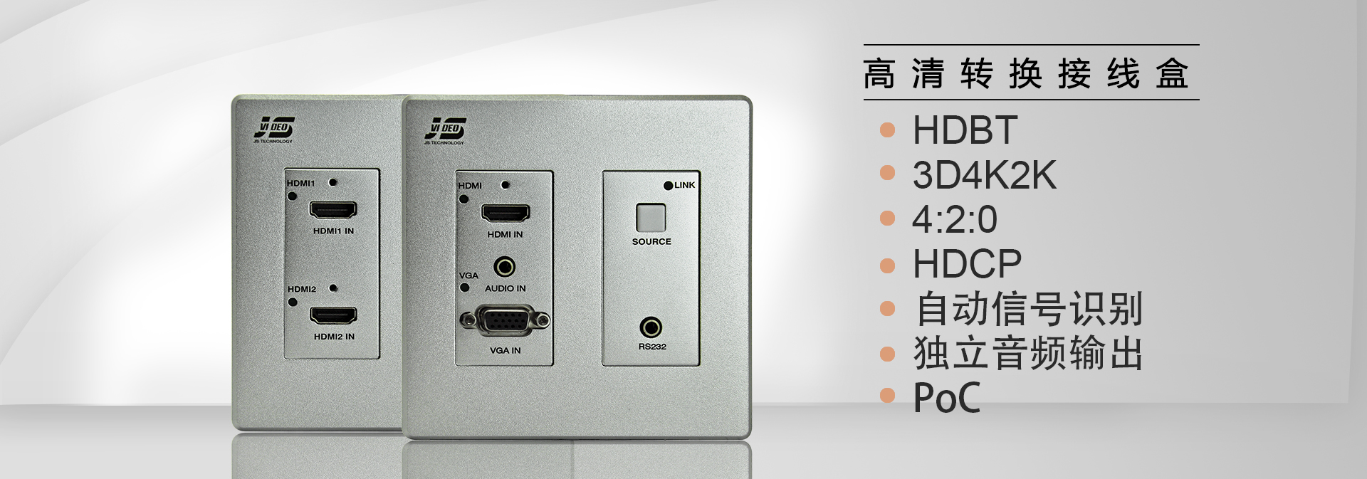某集團(tuán)總部辦公樓歷經(jīng)兩年的室內(nèi)裝修、弱電施工,終于在疫情緩解的6月正式交付;2年前在設(shè)備選型中,金視JS-WP302HD(帶有高清轉(zhuǎn)換式墻面插座)成為此項(xiàng)目選定品牌及型號(hào),總部辦公樓中共70余間大小會(huì)議室,共使用130套金視產(chǎn)品;金視JS-302HD墻面插座,內(nèi)置模數(shù)轉(zhuǎn)換,能將普通的VGA信號(hào)轉(zhuǎn)換成HDMI信號(hào)輸出,自帶音頻解嵌,能夠適應(yīng)現(xiàn)在不同信號(hào)輸出接口的筆記本接駁(VGA/HDMI),同時(shí)具