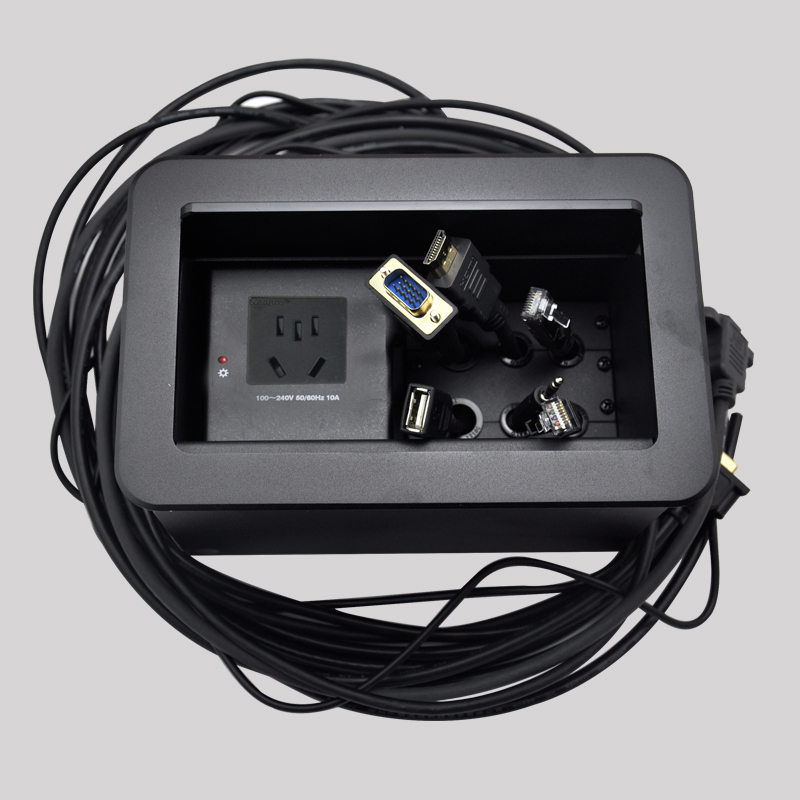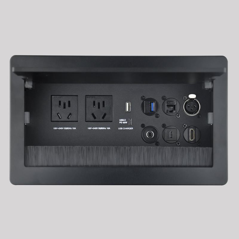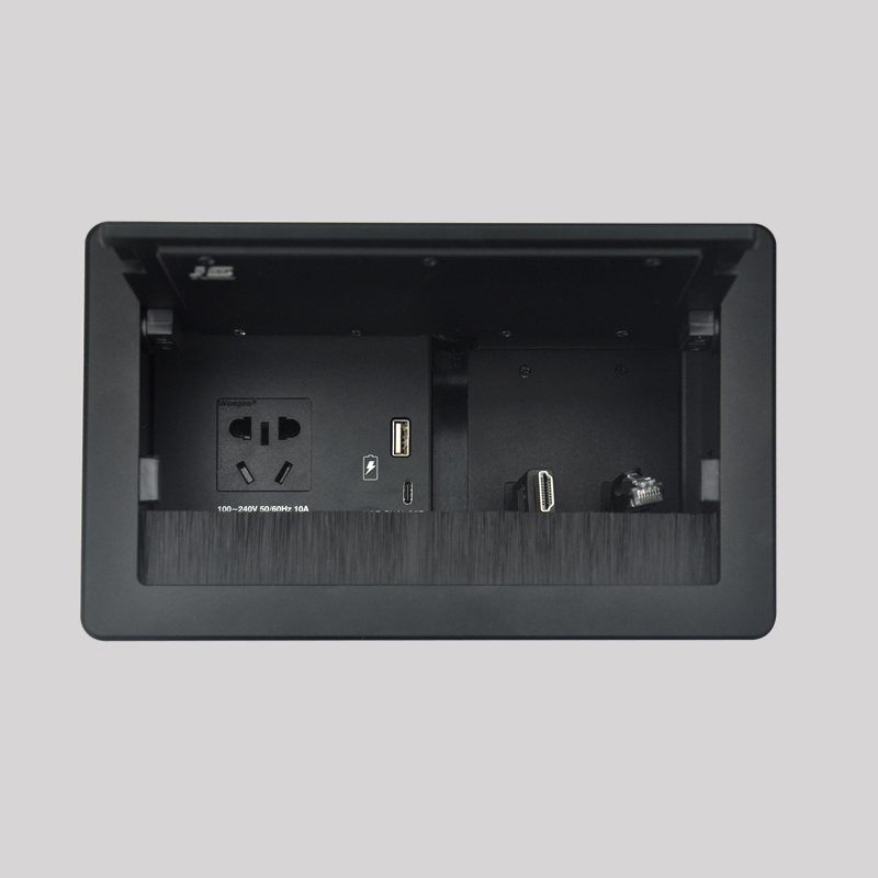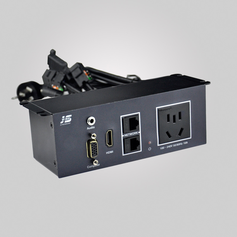 ?JS-Z300+ 系列可藏式接線盒提供了一個整潔、緊湊、簡單的連接解決方案;采用掀蓋式設計,隱藏安裝,使面板與桌面保持齊平,質優且價廉,供簡易辦公連接使用。