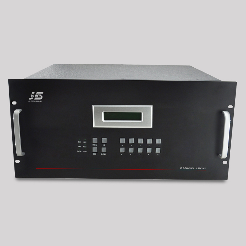 JS-MHD7272系列混合矩陣是一款高性能的高清視頻信號交換設備,可以加載18個信號輸入板卡和18個信號輸出板卡,最大可達到72路信號源輸入,72路信號源輸出。該矩陣支持各種高清數字板卡和模擬信號板卡組合,以及各種信號之間的交叉切換,任何一路信號的輸出可以自由選擇任何一路信號源而不會干擾其它的輸出,使信號傳輸衰減降至最低,圖像和聲音信號能高保真輸出。
