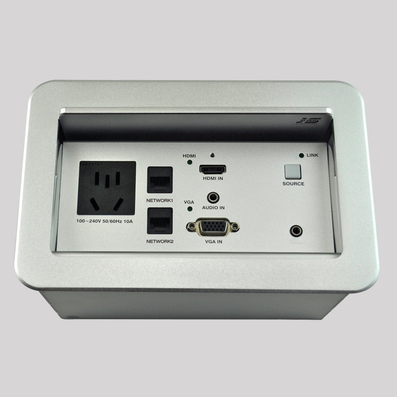 JS-U170HD 可藏式接線盒是一款帶高清轉換及長距離傳輸的適合桌面安裝的滑蓋式接線盒,它前端連接的 VGA、音頻、HDMI 信號可通過單根 6 類網線輸出高清視頻信號、音頻信號、傳輸距離 70M,安裝布線便利;JS-U170HD 采用了全數字式零壓縮技術,實現了視頻圖像點對點以及音頻的完美傳輸。最高支持 1920x1080P 60Hz 信號;支持HDCP 解碼(選配),可接藍光播放器,具有高可