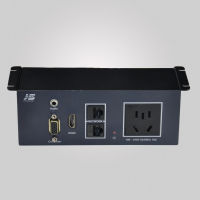 JS-U102H系列可藏式接線盒提供了一個(gè)整潔、緊湊、簡(jiǎn)單的連接解決方案,U10系列被設(shè)計(jì)成能夠安裝在臺(tái)下面、側(cè)部,可以保持臺(tái)面整體性,采用吊裝式結(jié)構(gòu)設(shè)計(jì),安裝便利(只需4個(gè)螺絲固定即可),盒體材質(zhì)選用2mm鋁鎂合金,表面采用氧化、拉絲多道工序技術(shù)處理,輕巧、美觀、大方。